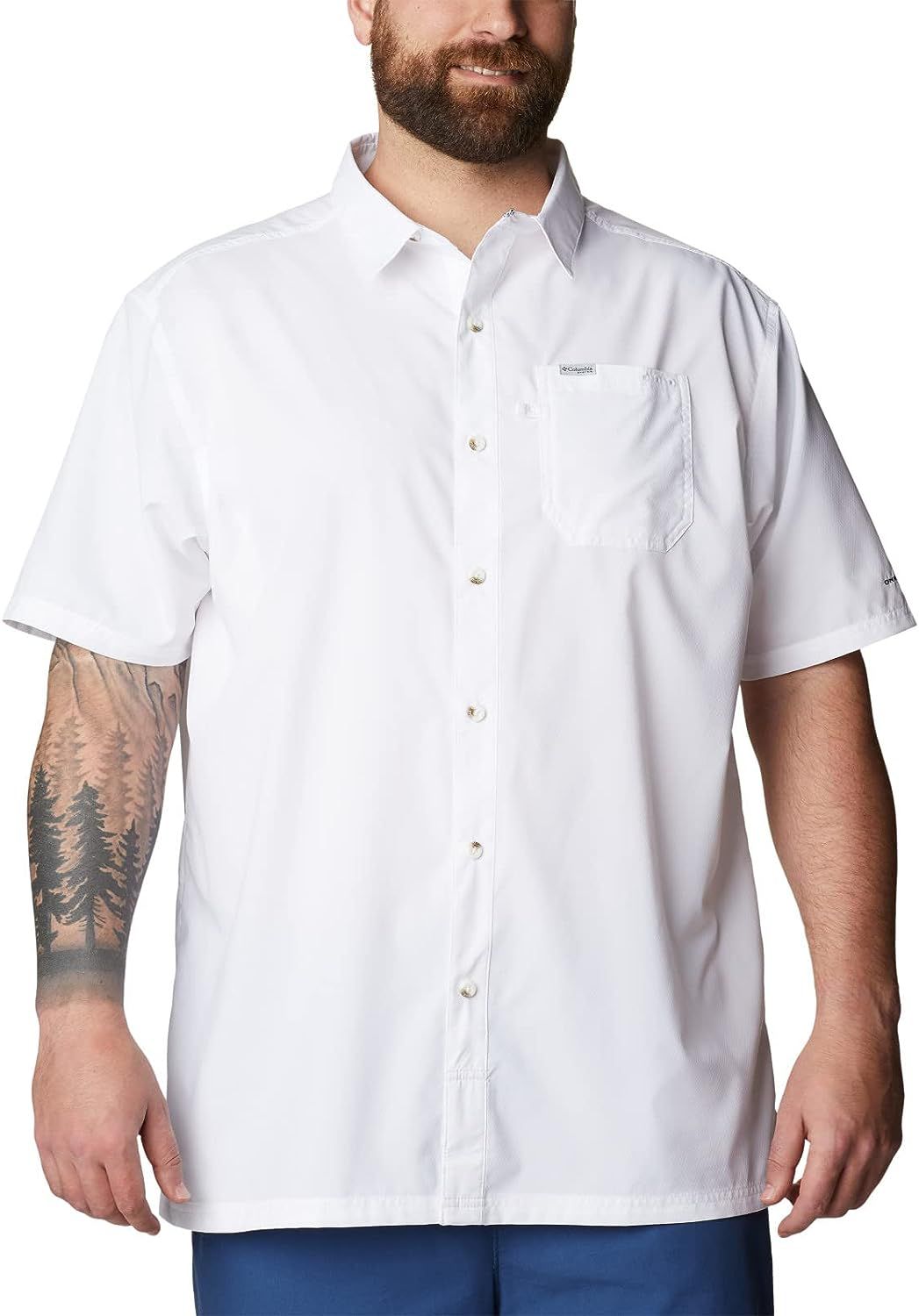 • La camisa de manga corta Columbia Pfg cuenta con la exclusiva tela UPF  para máxima protección contra los rayos UVA y UVB, tela transpirable que absorbe la humedad para mantenerte fresco y seco mientras estás fuera.