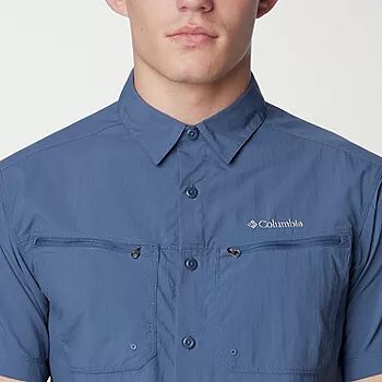 • La camisa de manga corta Columbia Pfg cuenta con la exclusiva tela UPF  para máxima protección contra los rayos UVA y UVB, tela transpirable que absorbe la humedad para mantenerte fresco y seco mientras estás fuera.