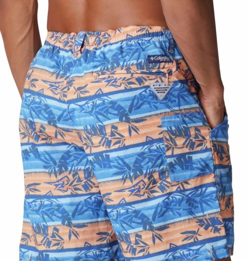 SECADO RÁPIDO: Los pantalones cortos de agua para hombre Columbia incluyen una función de secado rápido que evita que retengan el agua. El calzoncillo de malla adjunto y la cintura elástica con presillas para el cinturón los hacen cómodos de usar durante períodos prolongados.