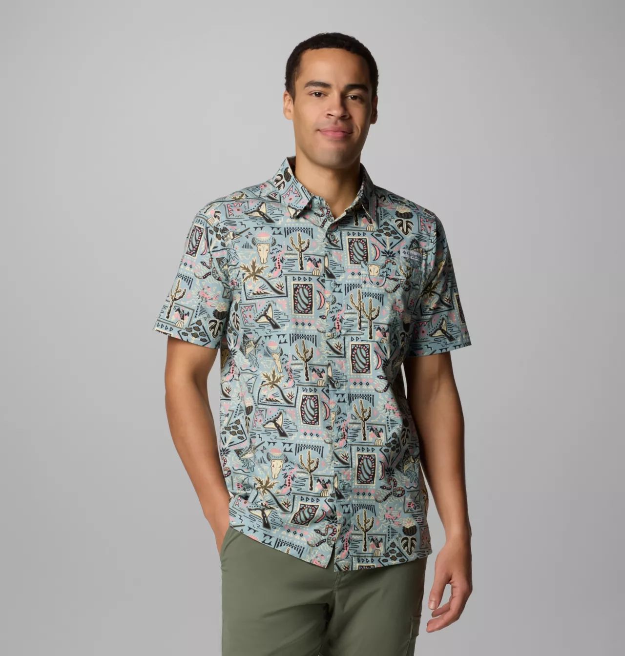 • La camisa de manga corta Columbia Pfg cuenta con la exclusiva tela UPF  para máxima protección contra los rayos UVA y UVB, tela transpirable que absorbe la humedad para mantenerte fresco y seco mientras estás fuera.